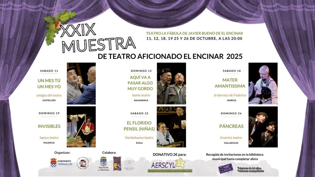 Se ha presentado la XXIX Muestra de Teatro para Grupos Aficionados “El Encinar”, con una edición para la que se han recibido cerca de cuarenta propuestas de 37 grupos de toda España, un dato que refleja la vitalidad y diversidad del teatro aficionado. El programa incluye géneros que van desde la comedia al drama social o los clásicos, con un total de seis funciones: