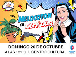 El Ayuntamiento de Paracuellos invita al público a asistir el próximo domingo 26 de octubre, a las 18:00 horas, a la representación de la obra Melocotón en almíbar, una divertida comedia de Miguel Mihura, que será puesta en escena por la Asociación Cultural Hijos de la Serendipia en el Centro Cultural (Ronda de las Cuestas, 39).