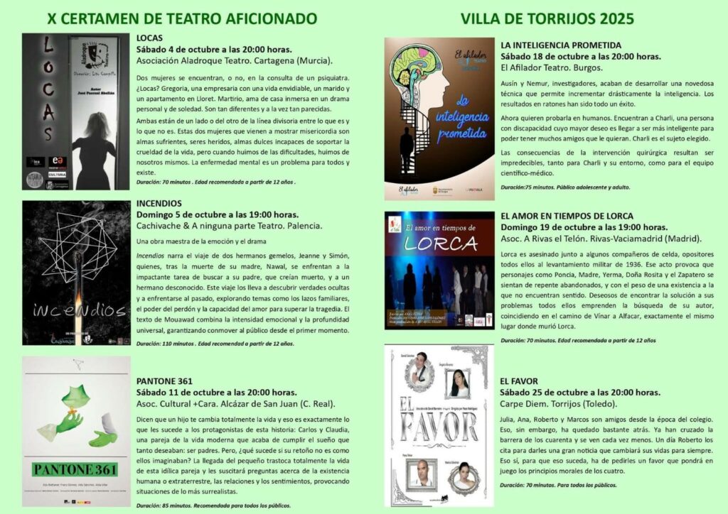 El municipio de Torrijos volverá a convertirse en un punto de encuentro cultural gracias al X Certamen de Teatro Aficionado “Villa de Torrijos” 2025, una cita que reunirá a compañías y amantes del teatro durante todo el mes de octubre.