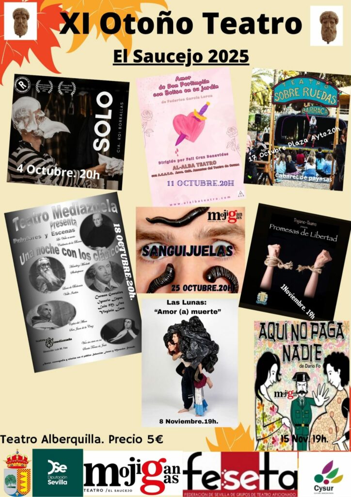 El Saucejo volverá a llenar de teatro sus meses de otoño con la celebración de la XI Muestra de Teatro Otoño Cultural, que se desarrollará entre octubre y noviembre de 2025. De esta manera, el certamen, que ya alcanza su undécima edición, se consolida como una cita esperada en la Sierra Sur sevillana.
